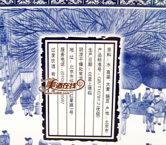 52度红星青花瓷珍品二锅头(500ml)包装盒细节